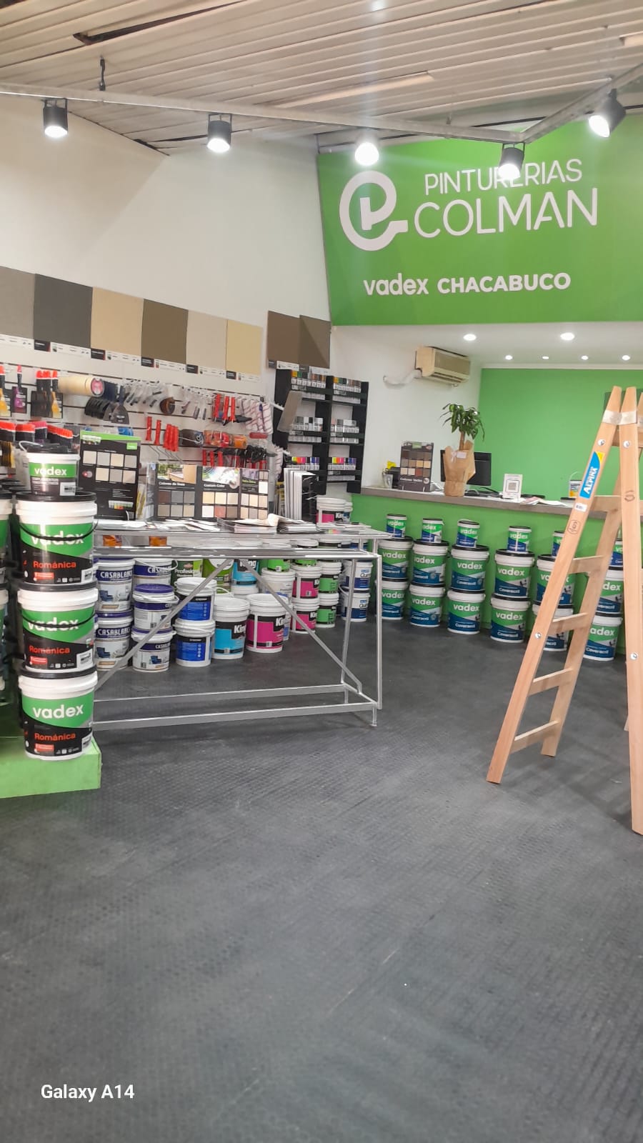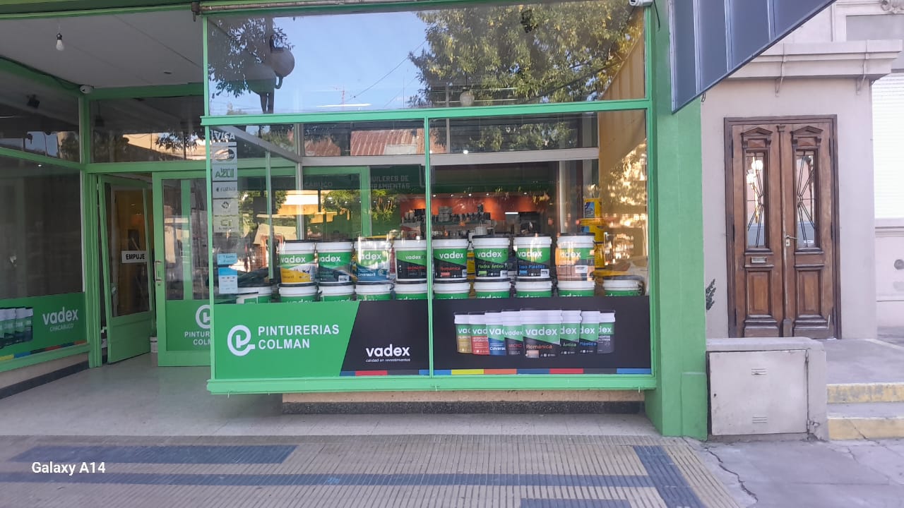 Fachada Pinturerías Colman Stock de productos Variedad de pinturas Accesorios y herramientas Entrada del local Muestras de texturas